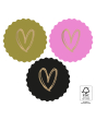 Rendez vos cadeaux encore plus spéciaux avec nos autocollants Heart Gold Joy. Ces autocollants de 55 mm ajoutent une touche de luxe et se marient parfaitement avec notre papier d'emballage. Chaque rouleau contient 250 autocollants certifiés FSC®.